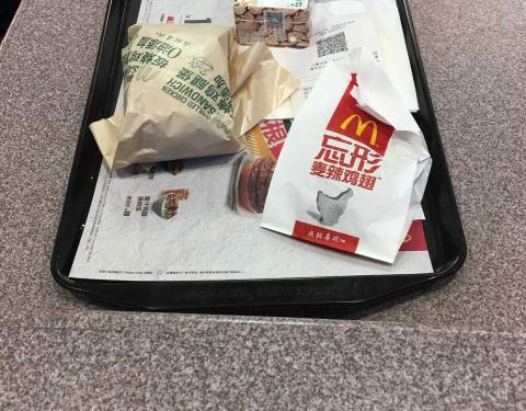 - 因为在附近等班车,正好来这里吃早饭,奥林匹克广场西门的麦当劳,什么时候来客人都很多的麦当劳
