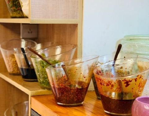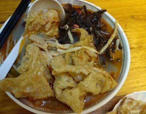 - 这次的腐竹炸的老了不大好吃,走的时候才发现还有自助调料区,原来真么多次都错过了品尝特色辣椒酱的...
