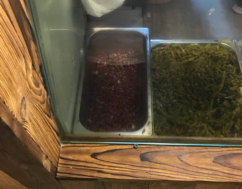 这次的腐竹炸的老了不大好吃,走的时候才发现还有自助调料区,原来真么多次都错过了品尝特色辣椒酱的...