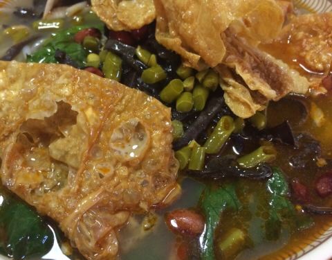 第一次尝试家味螺蛳粉+炸腐竹,这可比火锅店的味道厉害多了