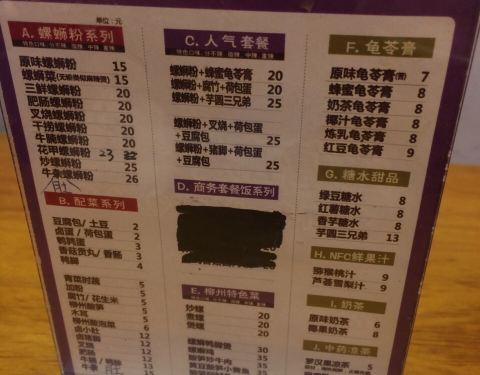 居民区的快餐店,不是正好坐在大屏幕对面还不知道这家店原来是做龟苓膏起家的,后面才引入的螺蛳粉,团购套餐很优惠。螺蛳粉微辣还是挺辣的,不过很正宗,龟苓膏很厚实,就是就餐环境比较局促,很多吃完了的剩盘...