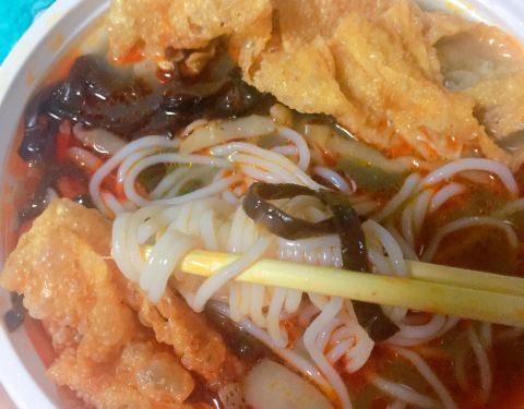 - 第一次尝试家味螺蛳粉+炸腐竹,这可比火锅店的味道厉害多了