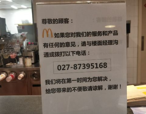 这家麦当劳(崇文广场店)位于雄楚大道268号A座一楼,是我在武汉去的次数较多的一家麦当劳店。在这点过餐,吃过外卖,领过免费雪碧。环境不错,洗手是自动感应手搓的。