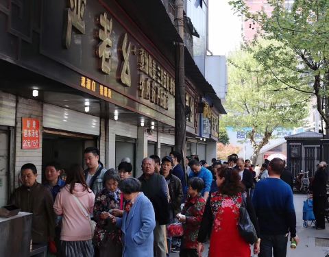 严老幺烧麦,十一点多来还有这么多老孃孃老爷爷在排队,还一面给我介绍这家烧麦他们吃了很多年了,现在年龄大了不敢吃油多多的豆皮了(豆皮里面有蘑菇丁、肉丁、糯米等),只能吃烧麦,还有这家土鸡蛋20块39个,看一些老年人提着袋子来不停买买买,销量应该很大。包括装烧麦的盘子都放在蒸笼上加热的,比较用心,也没有分店。