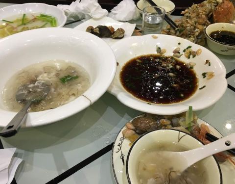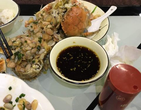 经朋友大力推崇,不远千里跑到了这家店想要品尝一下美食。 周边没有地铁,也看不见什么公交车,地铁下来之后是打车过来的,一眼望去可以看到一条街的饭店,感觉这边非常的热闹。 饭点环境挺一般,据说开了好些年,设施看上去较为老旧,但是整体卫生做的还挺好的,店员态度也挺好,饭点的时候入座率很高。 【白斩鸡】特色菜,葱油的调味是整个鸡的特色,鸡肉非常的嫩,味道很好。 【醉蟹】朋友很爱吃,价格一点也不贵,性价比较高。 【鲈鱼】第一次吃鲈鱼的生鱼片,吃上去的口感特别的其妙,味道很好,吃口不像三文鱼一样,会比较清爽一些。 【呛虾】感觉在上海已经很难找到好吃的呛虾了,这边的虾虾味道真的不错,喜欢这边的酱汁调配。 【毛血旺】味道不错,量大,就是午餐肉不怎么好吃。 性价比很高的一家店,平时不开伙仓的时候来这边吃一顿非常好。