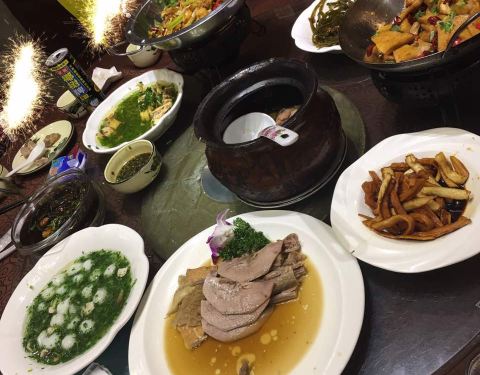 经朋友大力推崇,不远千里跑到了这家店想要品尝一下美食。 周边没有地铁,也看不见什么公交车,地铁下来之后是打车过来的,一眼望去可以看到一条街的饭店,感觉这边非常的热闹。 饭点环境挺一般,据说开了好些年...经朋友大力推崇,不远千里跑到了这家店想要品尝一下美食。 周边没有地铁,也看不见什么公交车,地铁下来之后是打车过来的,一眼望去可以看到一条街的饭店,感觉这边非常的热闹。 饭点环境挺一般,据说开了好些年,设施看上去较为老旧,但是整体卫生做的还挺好的,店员态度也挺好,饭点的时候入座率很高。 【白斩鸡】特色菜,葱油的调味是整个鸡的特色,鸡肉非常的嫩,味道很好。 【醉蟹】朋友很爱吃,价格一点也不贵,性价比较高。 【鲈鱼】第一次吃鲈鱼的生鱼片,吃上去的口感特别的其妙,味道很好,吃口不像三文鱼一样,会比较清爽一些。 【呛虾】感觉在上海已经很难找到好吃的呛虾了,这边的虾虾味道真的不错,喜欢这边的酱汁调配。 【毛血旺】味道不错,量大,就是午餐肉不怎么好吃。 性价比很高的一家店,平时不开伙仓的时候来这边吃一顿非常好。