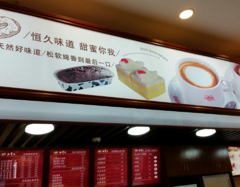 非常干净的一家面包点心店,经营了各类甜点等,最近还有促销活动,买68元还可送一杯咖啡哦!入店后可见一边是柜台和收银处一边是一排冷藏柜,柜台里放满了各种琳琅满目的点心,各式各样的口味和品种,让人目不暇...非常干净的一家面包点心店,经营了各类甜点等,最近还有促销活动,买68元还可送一杯咖啡哦!入店后可见一边是柜台和收银处一边是一排冷藏柜,柜台里放满了各种琳琅满目的点心,各式各样的口味和品种,让人目不暇接的不知选购哪种了,觉得色泽形状等都是让人馋的很!冷藏柜里更是各式各样的蛋糕和不同品向的蛋糕,而且现在还有促销手段!推荐巧克力慕士和芝士蛋糕,口味纯真!生日蛋糕还有折扣可拿哦!如果饿了还可坐下买了糕点等再要一杯咖啡吃饱了再走!特别提醒的是六点后还有八五折面包类优惠哦