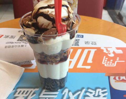 DQ也算是老牌子了,宝山吴淞附近好像一直也就这一家,开了倒是有很多年了。这次疫情期间出了不少优惠券比较划算就买了,趁天气稍微热一点就过来用了。 店里现场排队是没什么人,不过外卖生意超级好,要等很多...DQ也算是老牌子了,宝山吴淞附近好像一直也就这一家,开了倒是有很多年了。这次疫情期间出了不少优惠券比较划算就买了,趁天气稍微热一点就过来用了。 店里现场排队是没什么人,不过外卖生意超级好,要等很多单的外卖单子以后才能拿到,这点体验感不太好,话说冰淇淋也点外卖真的好么? 券对应的是抹茶巧克力的口味,双大杯装,量还是很足的,就是这个口感说实话不太好,尤其用的巧克力是那种特别硬的碎巧克力块,大小不一致,用力咬碎以后还是微苦的味道,这口感也没谁了,真心有点坑,搞活动的品种没好货这也算中枪了。 2019-12-02 12:13来自携程 网友
