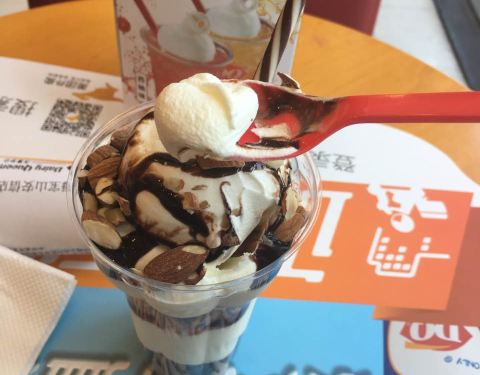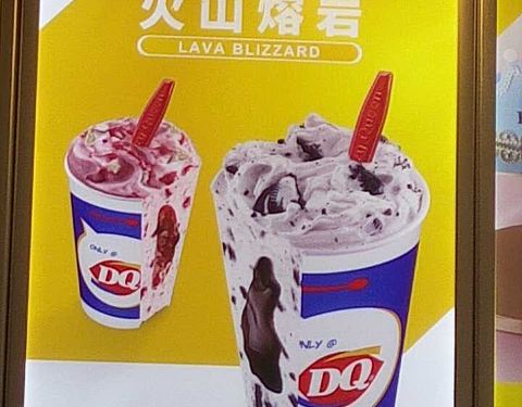 DQ是DairyQueen的首字母缩写,意为“冰雪皇后”,是冰淇淋连锁店。DQ的冰淇淋都是软体冰淇淋,经过均匀搅拌后,有倒杯不洒的美誉。产品极其丰富,其中又以“暴风雪系列和“风尚瘦身系列”极具特色。暴风雪是DQ冰淇淋中最大的系列产品,包括草莓、巧克力、抹茶、奥利奥、m&m巧克力、腰果、核桃不同的口味,还可以根据自己的喜爱,添加其他的调料,造出属于自己的口味。 店面一般不大,但都明亮整洁,有的还有些桌椅可以坐下来享用。