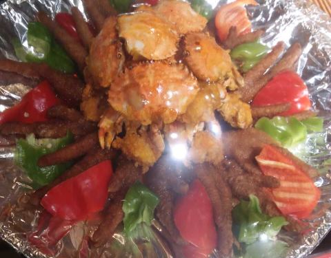 - 今天家人一起来百姓美食吃饭,点了几个特色菜,鲜蟹煲凤爪味道很棒,香辣蟹分量足,石锅天目湖鱼头价格实惠