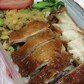 点的烧肉拼烧鹅。量不是很多,这味道还真是不错。饭里还配了各种蔬菜,大爱。