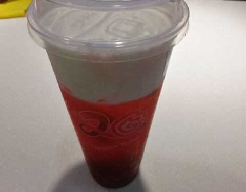 很好喝,当然不能多喝。旁边通地铁,路过就买了杯新口味的草莓奶盖,味道不错,里面有果粒的