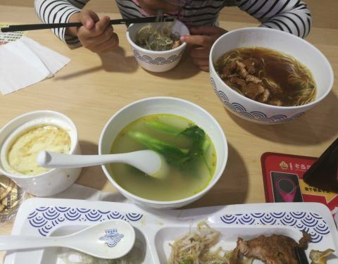 后院食堂,吃了才想起拍照首次尝试饭类套餐,饭是真多,素菜少了点。小家伙每次必点的大排面,牛肉粉丝汤,汤包