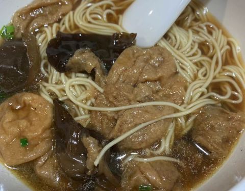 这家店是在田林路上的一家连锁店,因为地处田林新村,故每天人气都很旺盛,周边的居民都会过来随意吃点。面条细但很劲道,木耳面筋面里面的油面筋量蛮多的,但偏咸了些。焖肉面的肉蛮酥嫩的,但却是冷的,口感就有点差了。