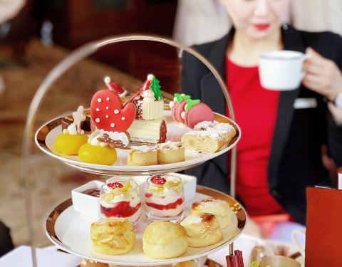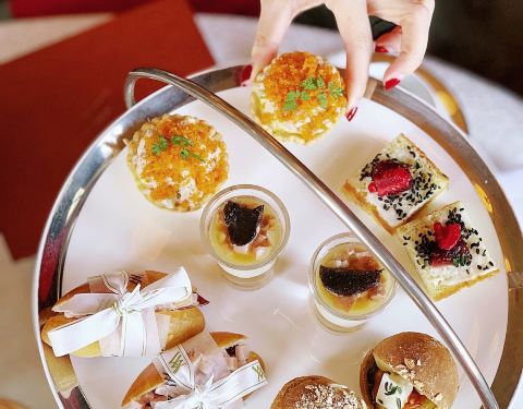 华尔道夫酒店的Salon de Ville浦江汇,丝绒沙发和古色古香的瓷器柜,营造出温馨的气氛。而其闻名沪上的下午茶,配上精致的三明治、泡芙、各种开胃小吃等美食,耳畔缭绕着行云流水的竖琴音乐,着实为不错的用餐体验。