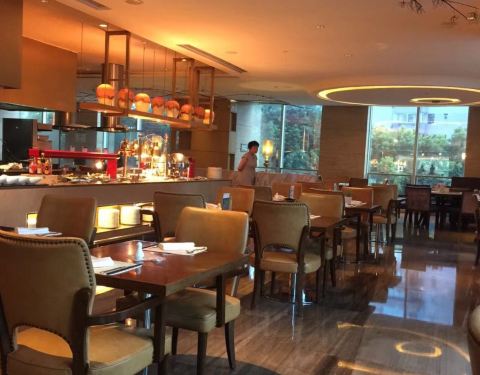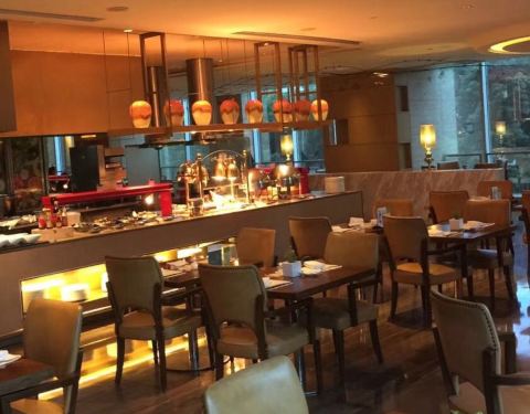 这里是上海的一个比较老的喜来登酒店了!这里现在交通也是方便的!这里的自助餐厅的环境很好!服务也很到位!菜品也很丰富!而且都很新鲜!适合不同人群!消费也不是很高!可以吃很长时间的!只要你胃口足够的好...