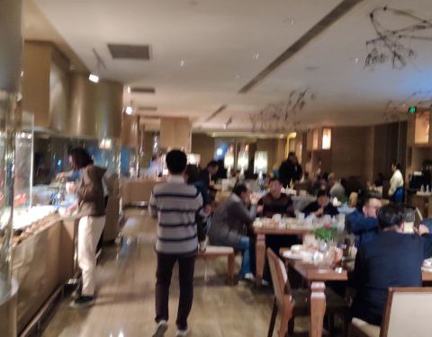 这里是上海的一个比较老的喜来登酒店了!这里现在交通也是方便的!这里的自助餐厅的环境很好!服务也很到位!菜品也很丰富!而且都很新鲜!适合不同人群!消费也不是很高!可以吃很长时间的!只要你胃口足够的好呢我们来的早!还很清净的!