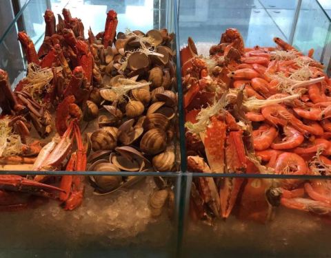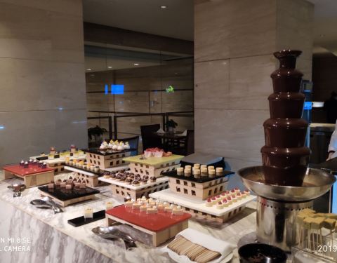 菜品也很丰富!这里的自助餐厅的环境很好!而且都很新鲜!这里是上海的一个比较老的喜来登酒店了