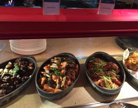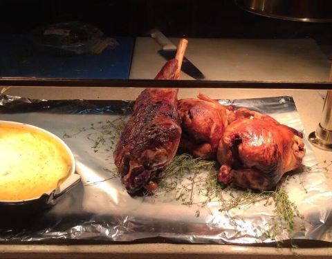 今天家里小朋友搞到优惠券,好像在150元基础上还打7折,我们一家7个都去了,自助晚餐还不错,虽然品种不是很多,但每个大类也都有的,蛮好的。人也不是很多,到底是喜来登酒店,环境好,服务好。