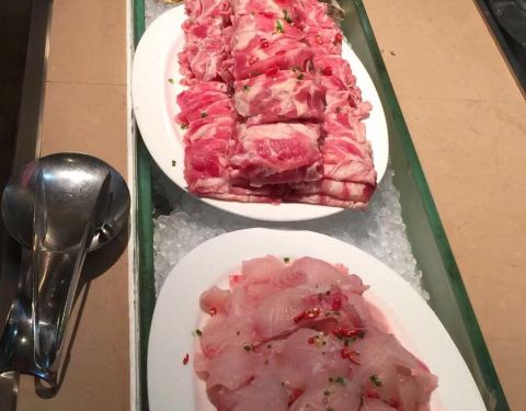 今天晚上下班Feast盛宴自助餐走起,周末需要好好犒劳自己! 自助餐厅位于虹口喜来登二楼,出电梯会有服务员接待,整个用餐区整洁宽敞。 一眼看见的是甜品区,有很喜欢的慕斯蛋糕,甚好甚好! 坐的区域旁就是大闸蟹和海鲜锅,简直取餐圣地,第一波拿了很多大闸蟹,奈何吃大闸蟹不在行,吃了一只我就转战生鲜和甜品来了。 三文鱼是由服务员切好给我的,比较新鲜,边上还有老虎蟹,浅尝半只即可。 喝的有咖啡和三种饮料,可乐雪碧及橙汁,看见有罐装汤力水苏打水,被告知这些在餐费外需要另外收费,那就作罢了。餐费内也有酒水提供,啤酒和干白,干白配海鲜很好,但酒虽好也切莫贪杯了,任何事都是过犹不及嘛 我胃口不如小伙伴,吃了几轮只能水果来凑了,火龙果、哈密瓜和西瓜拿了满满的一盘,边吃边欣赏小伙伴的表演,今天我其实已经发挥的很好,但是没有比较就没有伤害[偷笑]