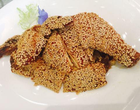 俏江南在长风景畔的四楼,远远就被门面上红、黑、白、黄的川剧脸谱吸引,店里的装修风格很中式,大牡丹花背景墙大气上档次。 团购的菜品一点不马虎,冷菜、热菜只只咪道嗲,可以明显感觉到菜品的用料讲究的。 招牌脆皮鸡,鸡的表面铺满了白芝麻,入口又脆又香,鸡肉鲜嫩,不愧为招牌菜。 极品毛血旺、麻酱油麦菜、青椒水煮巴沙鱼、担担面,都值得推荐。 不过店家的生煎包有点失望了,软塌塌的。 总体来说我认为长风景畔俏江南的菜品算上档次的。