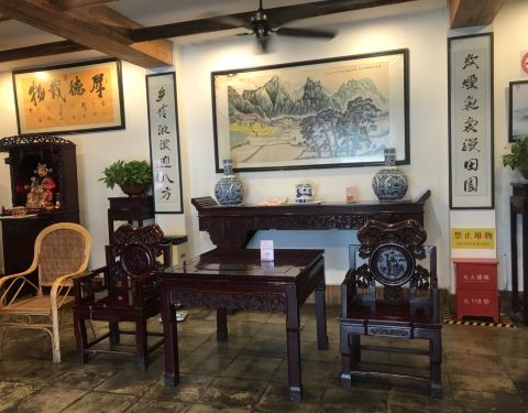 与好友去嘉定上赛道看完赛车,决定找家农家菜,搜到了农家大员,还算好找。在当地应该算是比较大的饭店了吧。豆腐衣就放在点菜区,现做现卖,感觉蘸点酱油,非常好吃,吃得出豆香味。腌猪脸肉质鲜嫩,都是活肉,一点不柴。碳烤鸡鸡肉酥烂,适合人多一起吃。最推荐的是卤猪蹄,非常入味,猪蹄软硬适中,有嚼劲。招牌菜饭也不错,都是比较地道的农家菜。下面要吐槽店里的卫生了,我们刚坐下的圆台面下,爬着一只德国小蠊,跟服务员汇报之后,立马帮我们换桌了,小强也被服务员用苍蝇拍拍死在桌上,说实话,也幸好是在农家菜店里,比较符合饭店的氛围吧,要是在一般的饭店里,估计早就走人了。总体来说,口味尚可,环境还需加大改进。