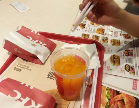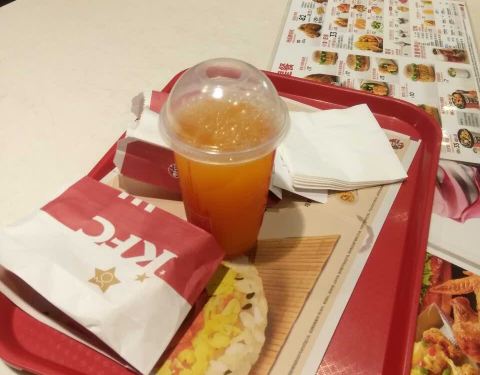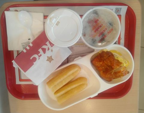 这家肯德基位于西郊百联入口出,地理位置很好。吃早餐还是很有性价比的。尤其是周末特供的早餐,有皮蛋瘦肉粥,有奥尔良鸡胸,有鸡蛋,有油条和豆浆,还有一个蛋挞,才26元,性价比很高。难怪客人这么多。