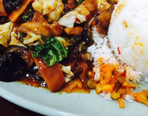 上次吃了宫爆鸡丁今天点了回锅肉饭,菜挺多的味道刚刚好。