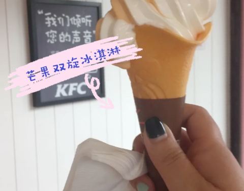 🌈芒果双旋冰淇淋 [爱心]外观: 这款芒果双旋冰激凌也是肯德基限时推出的甜品。芒果的黄色和香草的白色拼接在一起相当有食欲。 🧡口味: 淋芒果酱不同,这种直接拌入芒果粉的冰激凌更入味,和原味香草搭配在一...🌈芒果双旋冰淇淋 [爱心]外观: 这款芒果双旋冰激凌也是肯德基限时推出的甜品。芒果的黄色和香草的白色拼接在一起相当有食欲。 🧡口味: 淋芒果酱不同,这种直接拌入芒果粉的冰激凌更入味,和原味香草搭配在一起,不甜不腻,奶味香醇,还是非常清爽好吃的。 💛性价比: 肯德基在快餐领域的性价比还是很高的,每次推新都会伴随促销活动,还是值得尝试的。