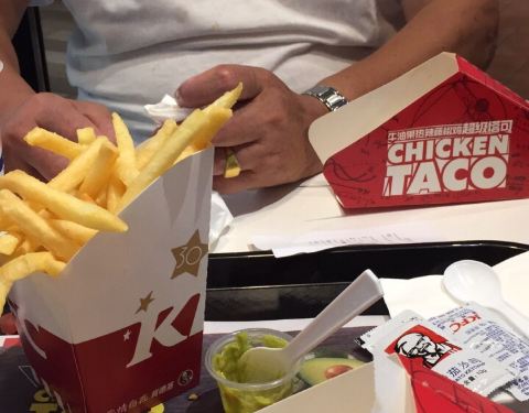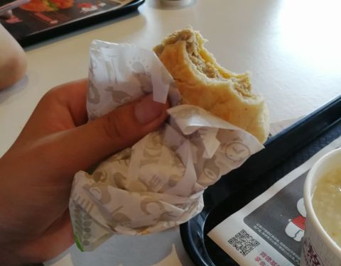 早上路过来吃早饭的。 肯德基大饼卷万物的广告做得很吸引人的,实物确实证明了广告仅供参考。 感觉上就是另一个版本的煎饼果子,里面还是卷了土豆丝,其实也像东北的土豆卷饼。 蛋挞倒是一如既往的老味道,酥脆喷...