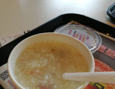 带孩子去肯德基吃早餐,现在可以在手机上提前点餐很方便,到店后直接到取餐地方报号码就可以了。宝宝选了帕尼尼+豆浆,我是皮蛋瘦肉粥+油条。