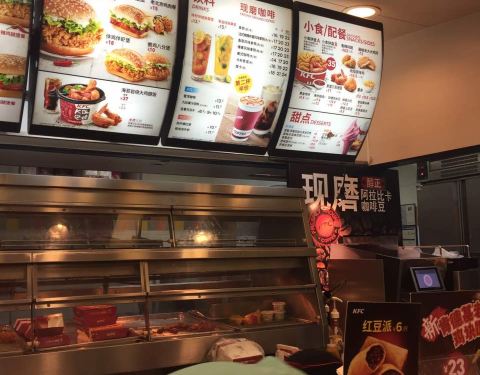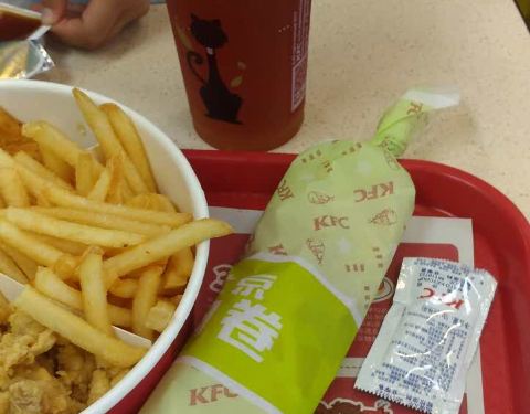 中环百联的肯德基,店面不大,但装修清新简洁,背景音乐音量不大,刚刚好的愉悦着耳朵,逛逛广场,坐下来休闲片刻,一杯可乐,一份薯条,一对鸡翅,感受美好滋味。 肯德基源于美国,是世界著名的炸鸡快餐连锁企业,在全球拥有10000多家餐厅。截至2007年11月底,肯德基在中国大陆200多个城市已经拥有2000余家餐厅。严格统一的管理,清洁优雅的用餐环境,令肯德基在数以亿计的顾客心里留下了美好的印象。肯德基的到来不仅率先将现代的快餐概念引入中国,使人们在传统的饮食中第一次感受到了从食品风味到就餐方式的根本不同,并给人们的服务
