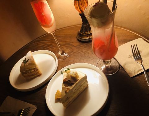雨夜打卡夏朵花园,有点意想不到的惊艳,本来只是和朋友约个地方说说话!选择了这里,环境很好,美式风格,低调又舒适,晚上灯光有点暗,不过氛围很好!饮品太棒了,点了一杯夏朵花园的鸡尾酒🍸和玫瑰柚子皮泡水,颜值与味道俱佳,太好喝了。忍不住,又点了两个小蛋糕🍰,焦糖脆脆蛋糕和海盐焦糖千层,又是超出预期,完全不会甜腻哦!很清爽的甜品口感!真的太爱了,下次晚上还要去打卡。