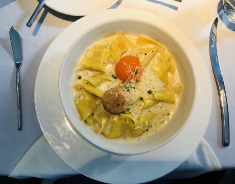 - 「黑松露鸡枞菇奶油宽面」面真的很宽啊,不过味道蛮不错的,酱汁也好吃