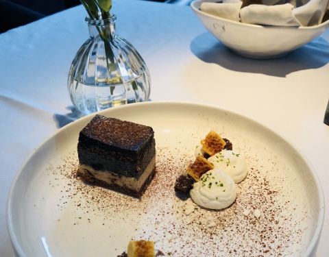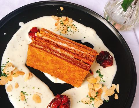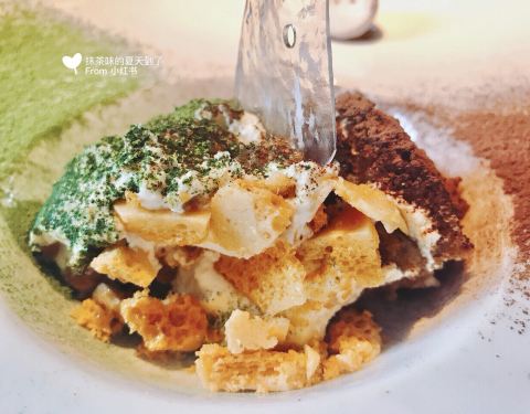 夏朵花园坐落于满是老洋房的华山路丁香花园附近,躲开了车水马龙的喧嚣,在梧桐街道一隅吸引着往来食客。 西餐厅面积也非常大,还有玻璃房和小阁楼,整体环境非常有格调,复古钢琴、昏黄的玻璃灯,精致的花草摆放,怡然自得。 蘑菇汤:浓稠的质地,满满的都是🍄蘑菇和奶油的香气,这道汤,很丰满 鸭肝黑松露炖饭:上层铺满了🧀芝士片,热乎乎的鸭肝入口即化,让人心服口服摄入自甘堕落的热量感,就是吃到后面有点太油了。 炉烤裙带肋眼牛排:焦香,鲜嫩,多汁,自洒玫瑰盐和胡椒粉 🎂生日送了🍵抹茶千层蛋糕,很有仪式感,不过真的好苦啊。。
