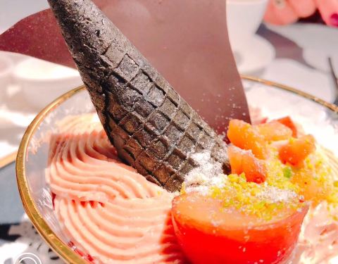 香草冰淇淋的冰凉口感,和温热的巧克力,混合吃下,十分满足! 10月份去的夏朵花园,至今还是非常喜欢