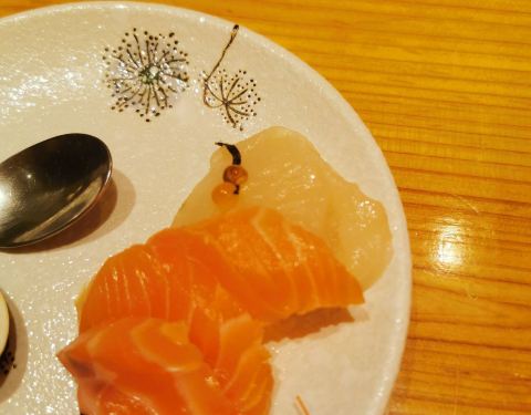 酒吞,在吃日料的名单里,他家始终是排在前三位的。 他家的食材真的很新鲜,服务也非常棒,提前电话预订了工作日的午餐座位,电话预约时,接线员可以直接报出来电人的准确信息(以前光顾过),还是让人感觉蛮亲切的。 黑椒牛舌,牛舌烤得不老不嫩,一点咸味刚刚好,吃起来香香的,蛮好吃。 中午的午餐定时性价比很高,168的生鱼片套餐,三文鱼很新鲜,吃起来糯糯的,还带着那么一点甜味。 套餐里面还有色拉,蒸蛋和味增汤,一趟下来,保准吃得饱饱的。 这几年日料餐厅竞争那么激烈,酒吞一直以它的好品质和高人气,妥妥地存在,也是超厉害的了。