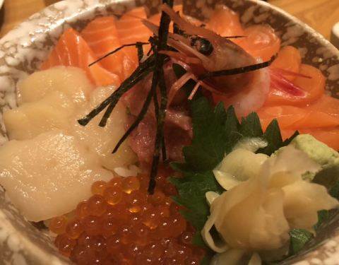 抬头可以看到大大的酒吞店招牌,下面就有直达电梯。可以选择定食或者单点,牡丹虾按个头大小价格不一,感觉口感差不多,记得最后把虾头炸食,很美味。定食配有很多小食,饭后还有甜品,可以免费添饭。