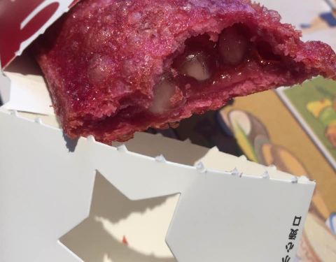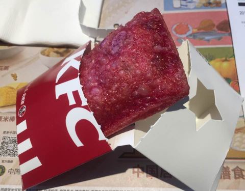 肯德基也出派了,红石榴,尝尝鲜,内陷是一粒粒的红石榴果肉的样子,但不是真的石榴果肉,所以不用吐籽