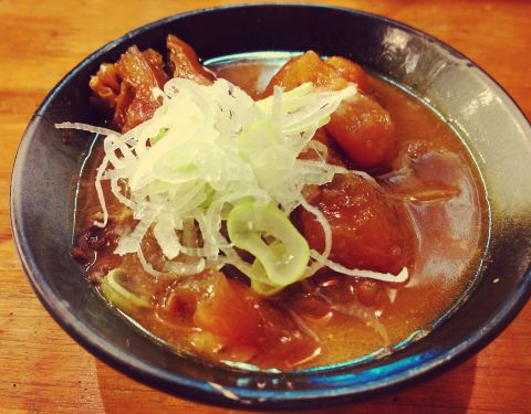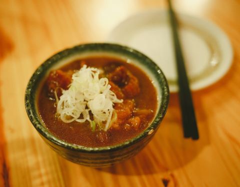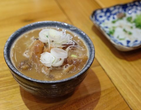 下班以后匆匆忙忙往仙霞路赶,到店门口的时候八点不到,整个人饿得宛如一缕幽魂但还是要苦哈哈地在门口等位,工作日的晚上都有这么多生意,你们家生意是有多好!现在下班之后想不开(?)出来约饭的人也真是很多...下班以后匆匆忙忙往仙霞路赶,到店门口的时候八点不到,整个人饿得宛如一缕幽魂但还是要苦哈哈地在门口等位,工作日的晚上都有这么多生意,你们家生意是有多好!现在下班之后想不开(?)出来约饭的人也真是很多了哦! 排队的时候围观了一下大家点的菜,基本上都光盘了,说明味道是真心不错的!落座就疯狂点单,招牌煮牛筋是一定要的,剩下就是各种烤物,虽然上菜比较慢吧但是味道都满嗲!选的是酱烧嘻嘻嘻,重口味的我们,比较偏爱烤鸡腿肉这种嫩嫩的肉,猪颈肉也不错,烤玉米很便宜也很大一根但是真的太老了根本咬不动而且塞牙,吃了两口就放弃了…… 炒乌冬倒是意外的好吃!软滑的乌冬面搭配着各式蔬菜丝和肉丝,还有清爽却够味的酱汁,如果不是碍于面子我可能会再点一盘吃个爽哈哈哈! 哦对了,店里的黑乌龙茶十分不走心,超级不走心!直接拿的三得利的黑乌龙茶过来再给个杯子……还要15块哦!起码你倒出来再给我呢! 除了黑乌龙茶之外,别的菜都可圈可点,乌冬面牛筋烤串都不会踩雷,按照自己的喜欢吃吧~