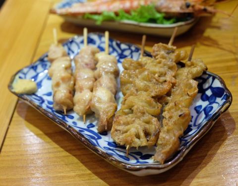 - 猪大肠、猪肝、牛舌、鸡皮[抠鼻]日本烧鸟,好吃