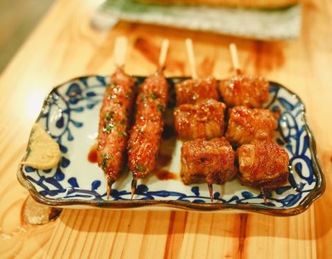 2017.4.9 33一对,莲藕一对,我们一对,糖糖,哥,77,胖儿 ✨✨✨✨✨✨✨✨✨✨✨✨✨✨ 这家放在收藏夹里好久好久,因为以前哥吃的时候,77吃的时候都说这家味道很好,所以我一直期待着哪一天可以吃到这样的美...2017.4.9 33一对,莲藕一对,我们一对,糖糖,哥,77,胖儿 ✨✨✨✨✨✨✨✨✨✨✨✨✨✨ 这家放在收藏夹里好久好久,因为以前哥吃的时候,77吃的时候都说这家味道很好,所以我一直期待着哪一天可以吃到这样的美味,33的家离这里不远、我们一群人骑着共享单车就这么去了…路途有点遥远…单车也要骑12分钟…但哥他们走路过来,居然只差我们几分钟!什么走路速度! *・゜゚・*:.。..。.:*・''(*゚▽゚*)''・*:.。. .。.:*・゜゚・* 我们到的时候,这家还没开门,员工们还在吃饭,我们也不管不顾先找一个地方坐下后,再等他们到时间营业再说~ *・゜゚・*:.。..。.:*・''(*゚▽゚*)''・*:.。. .。.:*・゜゚・* 因为我们有10个人他们给我们拼了个长桌子~这点比较不方便在于不是每个人都能吃到这道菜~所以我们选择了各叫各的点餐方法,把自己有兴趣的选出来就好了,不过量多可以共享~ *・゜゚・*:.。..。.:*・''(*゚▽゚*)''・*:.。. .。.:*・゜゚・* 人多有的时候就是觉得吃到的东西不多,但味道基本也有个大概的心理数了~盐烤味道比较淡,跟普通的烤串店没什么差~可能是我口味重~所以觉得一般般啊,唯一觉得比较好的是青椒肉卷,青椒包裹着肉卷。青椒的品质不错,咬起来居然还是脆的,而且因为青椒本身的鲜味,带出了咸鲜的味道,比起其他的要好很多。 *・゜゚・*:.。..。.:*・''(*゚▽゚*)''・*:.。. .。.:*・゜゚・* 当然有胖儿在必然也要有雷在,比如味噌肉糜拌银芽…这种东西也就能到胖儿的眼前一亮…最不推荐这个…别点 ✨✨✨✨✨✨✨✨✨✨✨✨✨✨ 总结:|⭐️⭐️⭐️| 环境:|⭐️⭐️| 服务:|⭐️⭐️⭐️| #青椒肉卷# ¥15 |⭐️⭐️⭐️⭐️| 一个印象深刻的菜一个难吃的菜打平,所以这家也就平平~