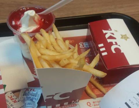 家门口的肯德基,位于太平南路太平商场斜对面,江苏饭店正对面,地铁3号线常府街站1号出口旁,交通方便,又是24小时营业,所以生意很好。但是美中不足的是,附近大爷大妈和流浪汉特别多,经常霸占座位,大声喧哗,打毛衣或者打牌,所以基本都打包带走,很少堂食。口味相对来说还不错,饭点高峰时需要排队,不过现在有手机自助点餐,速度快很多。肯德基30周年,价格重回1987年,土豆泥8毛钱,香辣鸡翅一对3块2,真的好划算。新品限量版哆啦A梦芒果双旋杯8块钱,好看又好吃。