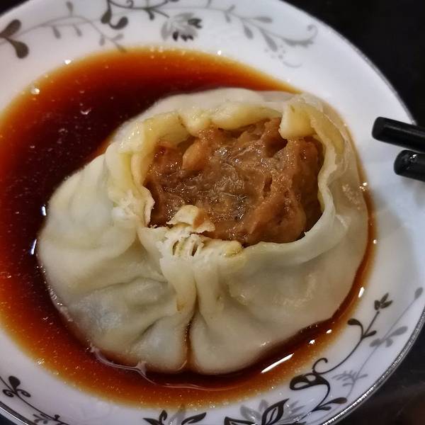 下一站是:熙盛源。熙盛源南禅寺店位于南禅寺对面的步行街里,由于步行街不是一条直马路,有很多分支弄堂,所以找熙盛源找了一小会。这家店店面不大,略显拥挤,人也相当多。我看无锡当地人不管点什么口味的小笼,都会附带点一碗开洋馄饨,所以我们也附带点了一碗红汤开洋馄饨(10元/10个)+一客鲜肉小笼(10元/5个)。鲜肉小笼:皮感觉比忆秦园的薄,一口咬下去,汤汁挺多的,可是瞬间觉得好甜好甜,这个甜已经超出我的范围了(虽然我自认自己是个很爱吃甜食的人)。吃了一个就觉得有点腻了,吃到第二个就觉得有点难以下咽了。