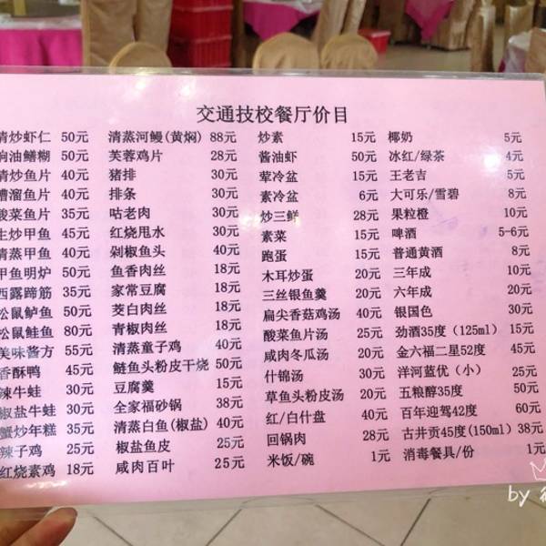技校里吃饭,what? 没有听错,确实要去技校的食堂。特地没吃早餐起了个晚,check out之后步行过来,种种不就是为了多吃一点,想着自己可能成为第一个客人,其实没有啦,10点半开门营业,已经有好几对咯。环境,...技校里吃饭,what? 没有听错,确实要去技校的食堂。特地没吃早餐起了个晚,check out之后步行过来,种种不就是为了多吃一点,想着自己可能成为第一个客人,其实没有啦,10点半开门营业,已经有好几对咯。环境,怎么形容,有种国营餐厅的感觉,但是配置就是很一般的那种,比食堂稍微好一丢丢。紫红的台布一摊,上面在铺了一层塑料一次性台布,这种感觉就,好吧。看菜单吃饭。