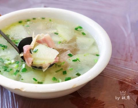 咸肉冬瓜汤 吃多了油腻的,喝点汤也不错,这足足一盆的分量也是很实在。