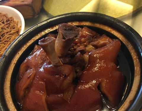 煲的种类很多,味道也不错,就是分量感觉有点少。店里生意不错,中午去基本客满,味道都很好。印象挺深的是那个猪蹄黄豆煲,黄豆烂烂的很好吃,猪蹄炖的也很烂、膏脂很好。招牌菜好像是剁椒鱼头,也挺不错的,剁椒鱼头和饺子一起蒸的,味道蛮鲜的。我最喜欢的还是阿月煲的酸菜鱼。