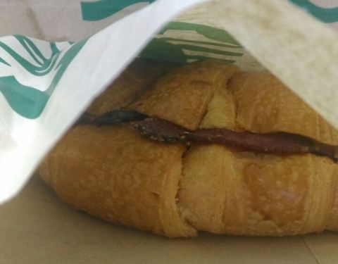 星巴克店越来越贵,橙汁可以,虽然不是鲜榨,味道还不错,牛肉芝士可颂其实蛮油腻的,加热后可以,服务不好,要开发票,已经说明境外报账,还要扫条码填资料,什么态度。