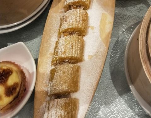 点评购买的四人套餐,满满一桌,出品、环境、服务综合指数五星。 【环境】🌟🌟🌟🌟🌟 番禺地区最好的高尚小区,酒店金碧辉煌又不失温馨。餐厅大厅明亮,光影浮动,卡座位宽敞舒适,窗边位景致优美,绿树掩映。餐具用品十分高档。 【服务】🌟🌟🌟🌟🌟 当日主管非常周到体贴,做合适推荐,并及时根据特殊需求调换座位。 【口味】🌟🌟🌟🌟🌟 398元四人套餐非常丰盛,差不多有10样早茶点心。「香芒水果薄餐」最好吃,添加的芒果内涵是亮点,清新可口。「紫米脆皮肠」很有特色,紫米粉皮别有一番风味。「豉油皇炒面」炒得焦香。其他的茶点都在水准。另外单点了豉油鸡,每次来的必点。 特别愉悦的早茶体验。