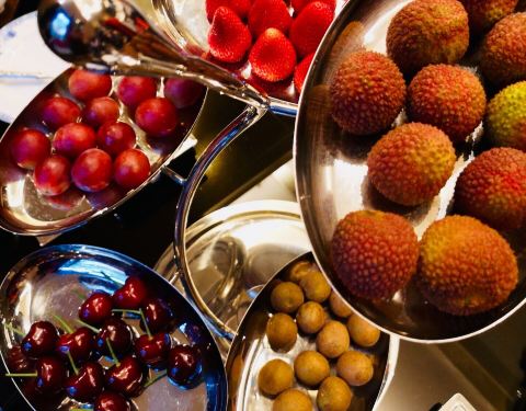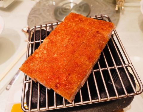 环境☀️ 位于酒店二楼的真粤中餐厅,中式古风的设计不失时尚,四处洋溢着简约的艺术气息。贵宾包房的檀香桌椅和屏风营造了私密空间,青花色餐具如点睛之笔提亮了浓厚的棕木色,氛围雅致舒适。 菜品 「餐前水果」餐前五层水果,红了的樱桃、艳了的草莓、鲜了的荔枝、灿了的龙眼,混搭农舍有机「五谷杂粮」,形成一派喜气洋洋、五谷丰登的开场,让我们以清爽的口味和健康的方式进入饕餮大餐。 “真粤”的每一次上菜,你都能感受背后管理者和主厨们的认真对待,就连三道凉菜都是那么隆重。 一道「凉拌核桃仁」,奶白的核桃仁好似朵朵白云,那么清脆可口,完全没有一点儿果涩;一道「凉拌云南迷你黄瓜」,手指大小的它们来自彩云之南,腌制的酸甜搭配的却是玫红的寿司蚌;一道「干冰熏鱼」,笋壳鱼为料,干冰上阵,烟雾缭绕中品到的是酥香甜嫩。 「冰烧三层肉」,黑色瓷炉中是微微的碳火,焦黄色的烧肉肥瘦相宜,入口即化的肉脂和香脆的皮层交织融合,回味绵长。 「海皇迷你冬瓜盅」,翠绿的夜兰花浮萍其上,正宗的冬瓜盅都会撒上这种小花,去浊添香而又不会抢味。冬瓜茸的清气,瑶柱蟹虾的鲜味,以及两厢煨出来的清亮汤汁,温暖了胃,滋润了舌。 「避风塘炒糕蟹」,金红色的糕蟹是轰轰烈烈的,厚实的身躯与肉钳横行在白色大瓷盘上。在炸蒜蓉那独特的甘脆焦香铺垫下,蟹肉的鲜嫩里弥漫着蒜蓉的奇香,让人忍不住口地把里里外外都全部收拾干净。 「昆明烫手乳鸭仔」,来自西南春城的鸭仔,很像海南的加积鸭,皮薄、骨软、肉嫩、脂肪少,乳鸭脆皮的烤制更是拿捏得恰到好处。 「古法蒸老虎斑」,古法的经典在于二十年的陈皮,理气化积的陈皮蒸鱼,让鱼的鲜美中别有一番风味。 「韭菜花炒虾配生菜」,可以带皮吃的河虾,肉质饱满,虾皮鲜脆,生菜的爽口可以增加你进食的数量。 「传统濑粉」,一道经久不衰的西关传统小吃,星河湾的主厨们认真地维护了从前的味道,粉质晶莹细滑,鹅肉、虾肉、冬菇的汤头浓郁鲜美。 「新西兰蜜糖萨其马」,令人难忘的一道甜品,麦卢卡蜂蜜是新西兰国宝级特色蜂蜜,气蕴天成,浓醇蜜香,质滑芳甘,它的加入让酥软的萨其马风味迷人、耐人寻味。 服务♂️ 星河湾真粤中餐厅的服务很温馨,从点单、上菜速度、餐中服务到买单送行,经理主管及服务生一直保持着积极主动的态度,周到细致、体贴入微并很有眼力,令这次精品粤菜盛宴的体验十分完美。